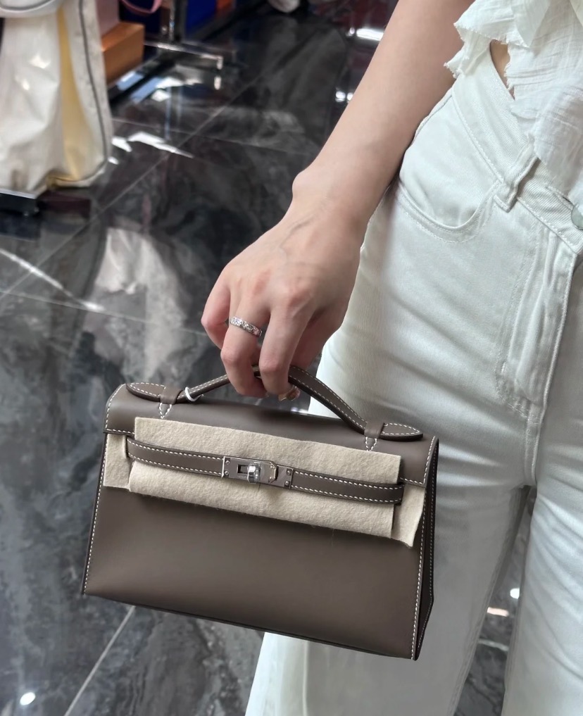 エルメス ハンドバッグ ポシェットケリー エトゥープ/シルバー金具 スイフト K刻印 HERMES バッグ エルメス ポシェットケリー エルメス バッグ エルメス レディース HERMES Kelly HERMES