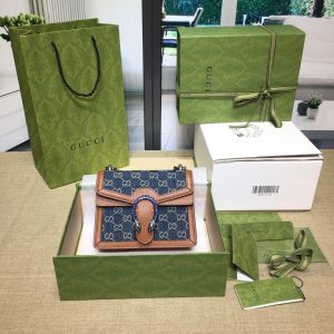 グッチ ディオニュソス GGスプリーム キャンバス スーパーミニバッグ ダークブルー&ブラウン 476432 KHNRN 8375 レザー シルバー金具