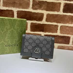 グッチ Logo card holder 財布 レディース 春夏 2024 新作 ライトグレー 773428 0OP0N 1440 レザー ゴールド金具