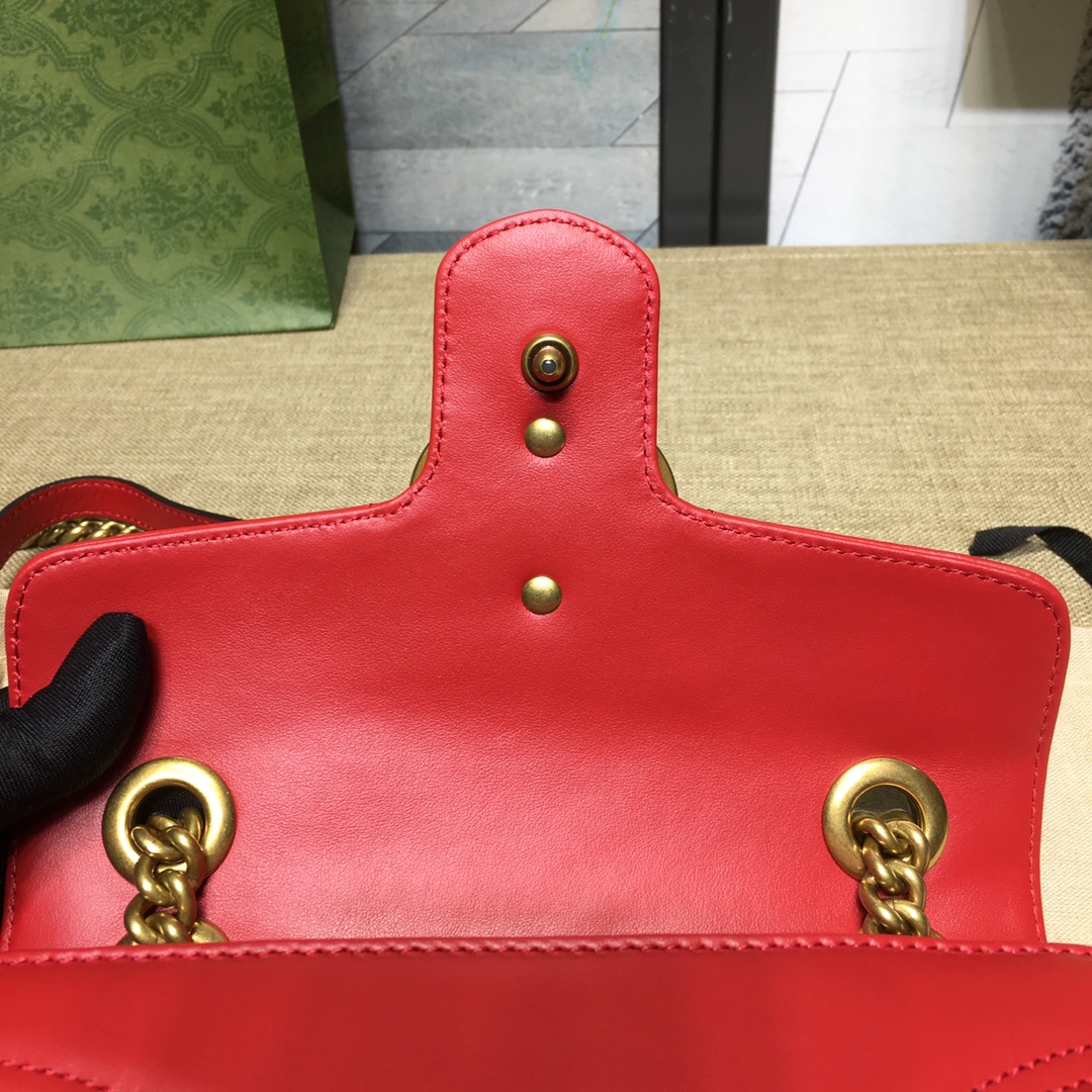 ブランド グッチ 商品名 GGマーモント キルティング ミニバッグ サイズ 22-13-6cm 色 レッド ゴールド金具 素材 シェブロンレザー 品番 446744 AABZC 6832 状態 新品 付属品 箱・布袋