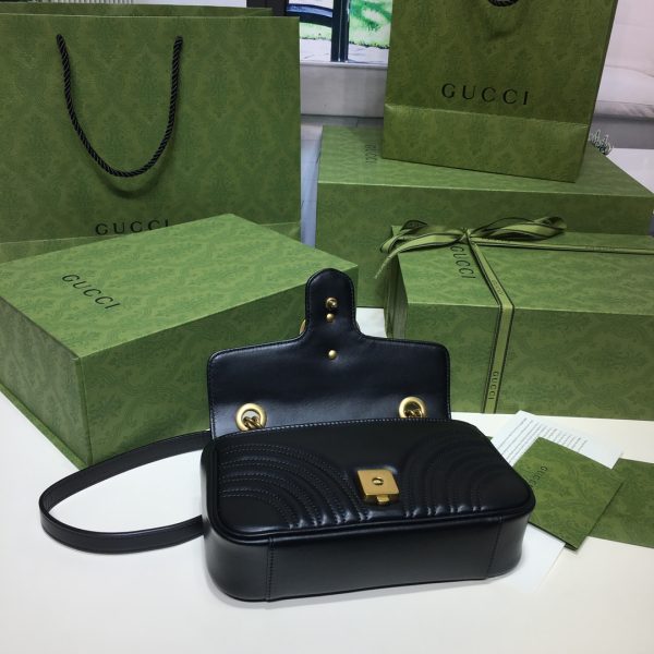 グッチ GGマーモント キルティング ミニバッグ ブラック 446744 DTDIT 1000 シェブロンレザー ゴールド金具