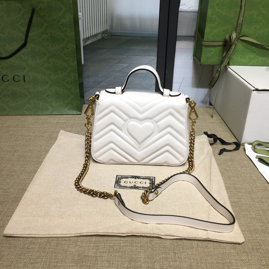 ブランド グッチ 商品名 GGマーモント ミニ トップハンドルバッグ サイズ 26-15-7cm 色 ホワイト ゴールド金具 素材 レザー 品番 547260 DTDIT 9022 状態 新品 付属品 箱・布袋