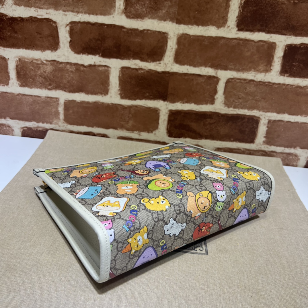 グッチ GGスプリーム クラッチバッグ EXO KAI コラボ ベージュ/ホワイト 736753 2YQAG 8695 GGスプリームキャンバス/レザー ゴールド金具